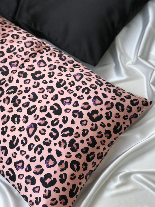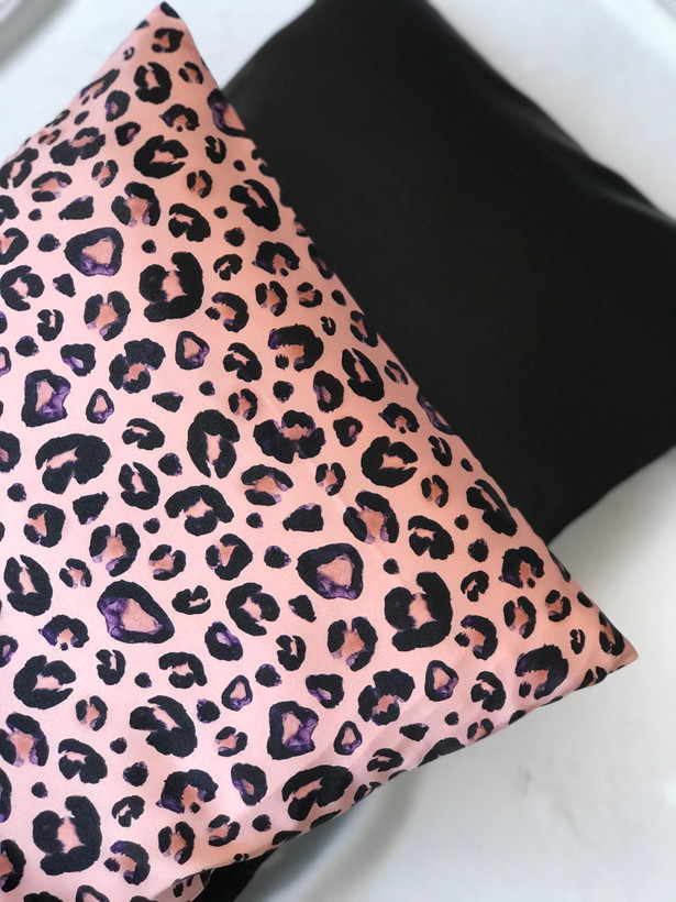 روبالشی ساتن طرح پلنگی صورتی